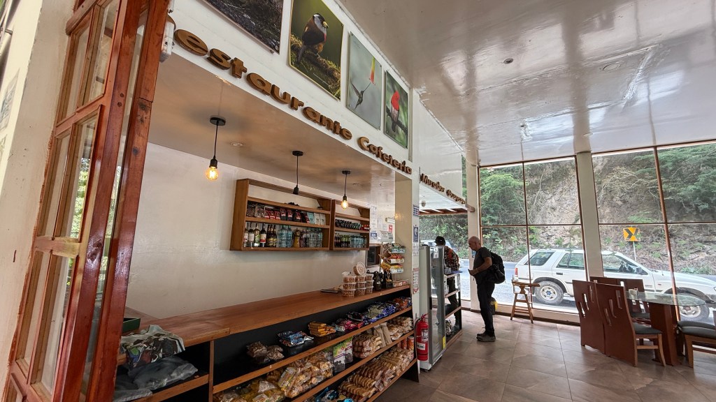 The transition felt dramatic, almost like crossing an invisible ecological threshold. And I won’t deny it: the sight of a real paved highway beneath us felt like a gift. After the bone‑rattling climb that morning, the smooth asphalt was a small luxury, and my back was profoundly grateful for it. Perched along this very stretch of the old Quito–Mindo road is Mirador y Restaurante Guaycapi, a place that has quietly become one of the most beloved birding stops in the entire region. What began as a simple scenic restaurant gradually evolved into a must‑visit site for birdwatchers by offering something that cloud‑forest birding rarely guarantees: easy, close, and consistent access to spectacular species.