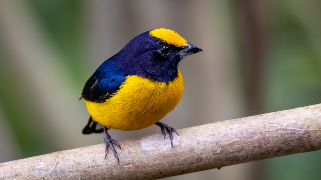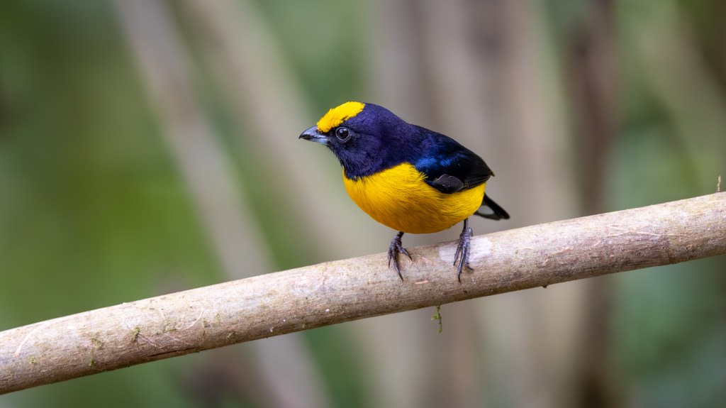 With its open‑air terrace overlooking a lush valley where hummingbird feeders, fruit stations, and flowering shrubs were to draw a constant parade of dazzling birds the Mirador y Restaurante Guaycapi did not disappoint. The first birds that caught my attention were those arriving at the fruit feeding stations. ORANGE-BELLIED EUPHONIAS appeared first, their compact bodies glowing with a rich golden‑yellow belly that contrasted beautifully against their glossy blue backs. They moved with quick, purposeful hops, their sweet, whistled calls adding a cheerful soundtrack to the morning.