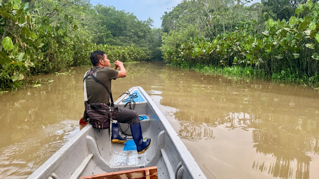 We climbed back aboard the Mama Lucy and continued upstream, crossing the river toward Yasuní National Park.