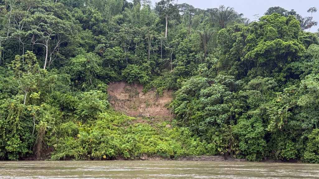 Our next destination was Yasuní Parrot Lick #1, a towering cliff with a broad, exposed face framed by immense rainforest trees rising just above the riverbank. Our time there was limited, but the activity was immediate and impressive.