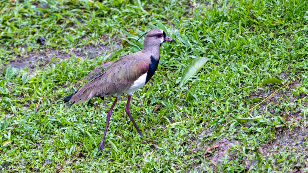 While we relaxed at the lodge—snacking on popcorn, sipping tropical drinks, and listening to the rain pulse on and off against the thatched roof—we still managed to add a few more treasures to our growing collection of bird photographs. A pair of SOUTHERN LAPWINGS strutted boldly across the open lawn, their striking black‑and‑white faces and sharp, metallic calls giving them an air of perpetual indignation. SMOOTH-BILLED ANIS gathered in loose, sociable clusters, their glossy black plumage and oversized ridged bills making them look like a troupe of curious, slightly disheveled onlookers.