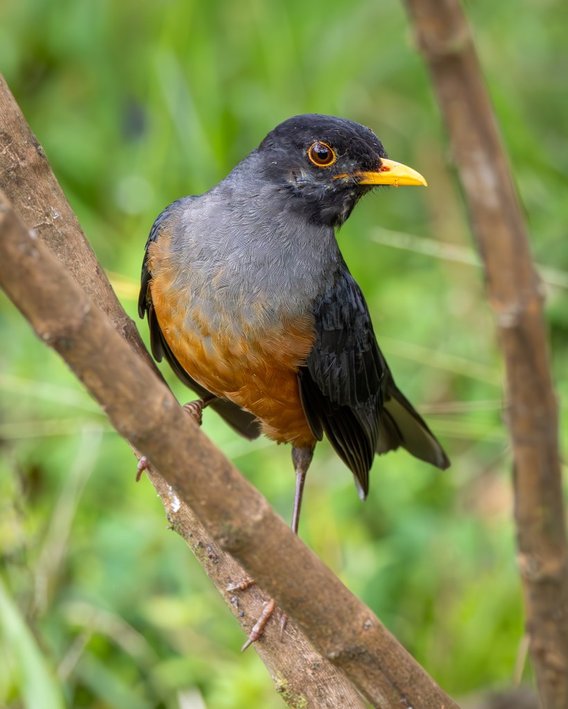 In the shadows, a Chestnut-bellied Thrush stepped into view—richly colored, contemplative, and far more elegant than its understated name suggests. Its deep chestnut underparts seemed to absorb the dim light, giving the bird a warm, earthy presence amid the cool understory. It moved with a quiet, deliberate grace, pausing often to tilt its head and listen for movement beneath the leaf litter.