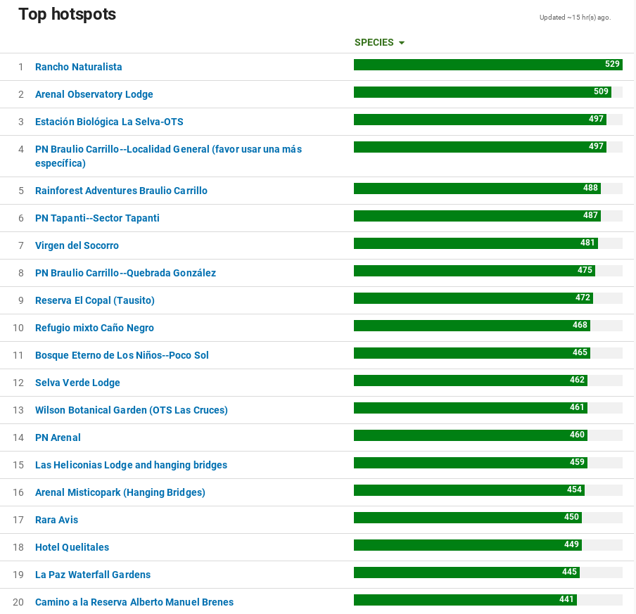 Including the Pre-Tour visit to Rancho Naturalista, I either created or was included in 64 eBird generated checklists. These checklists resulted in 358 species add to my brand new Costa Rica Life List with 167 of those species being new lifers added to my World Life List (1047).