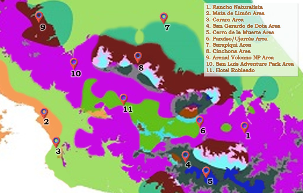 Biotic Zones Visited During Eagle-eye Tours Costa Rica Sampler Trip