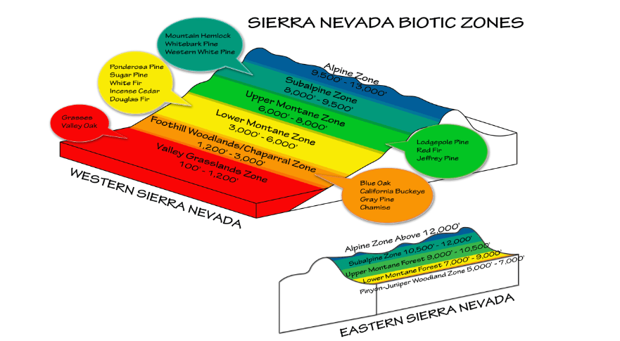Here’s a breakdown of the different biotic zones that can be found in the Sierra Nevada Mountains: