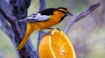 The Bullock’s Oriole is a Fairly Common Summer Visitor of the Sierra Nevada in the Foothill Woodlands & Lower Montane biotic zone